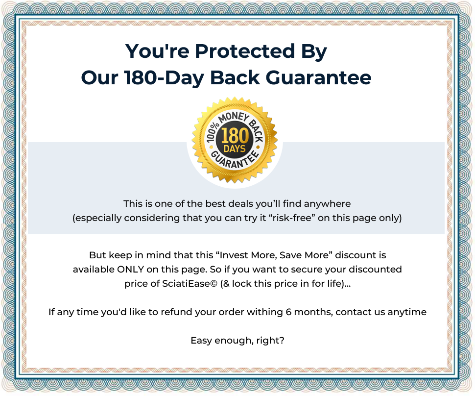We decided to create something we call our “Invest More, Save More” program, where the more bottles of SciatiEase© you buy, the more you save.